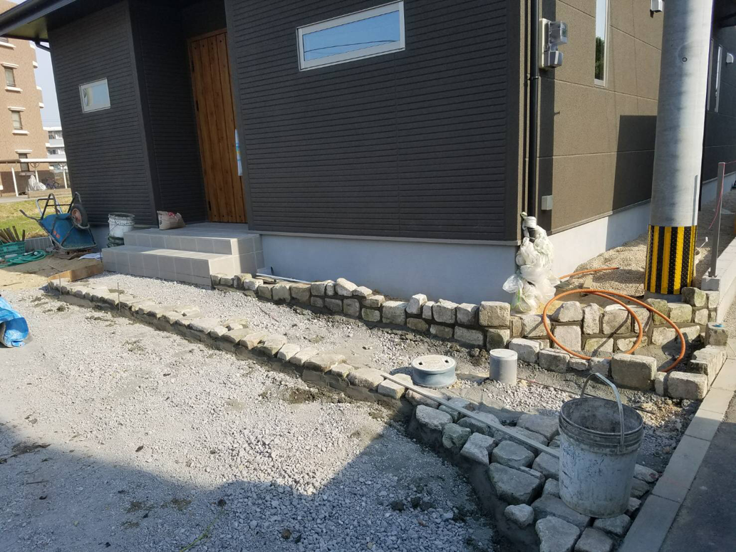 追加工事で玄関の階段上がって正面にある汚れたブロックの目隠しに